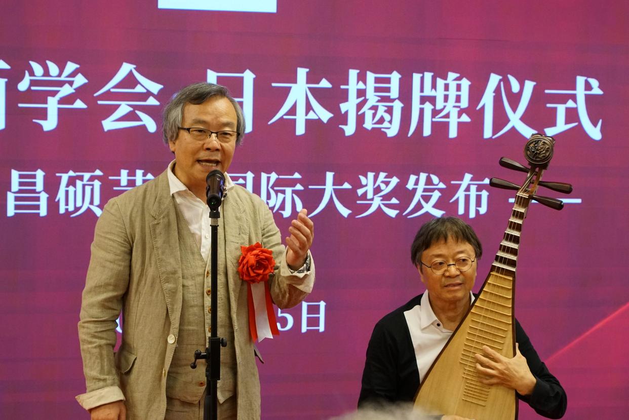 嘉宾代表登台剪彩后,高云、韩学中、赤木范陆、首藤胜次共同为“中国画学会·日本”揭牌。这,标志了中国画学会·日本的正式成立,也将一桩彪炳于二十一世纪的大事件镌入艺术史。