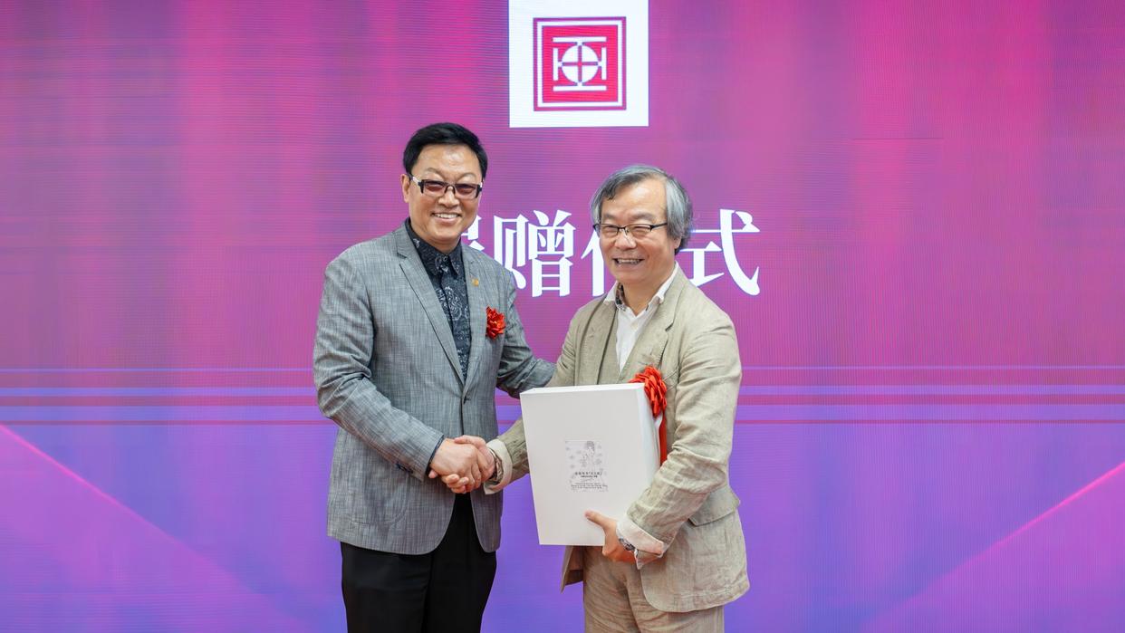 吴昌硕艺术基金会会长吴超钩元提要地介绍了“吴昌硕艺术国际大奖暨国际中国画双年展”诞生的背景,宣布项目正式启动,并向韩学中会长赠送一方匠心独运的大印。